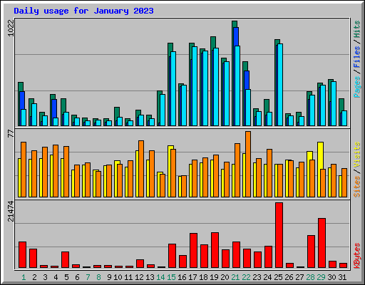 | Day | Hits | Files | Pages | Visits | Sites | KBytes | ||||||